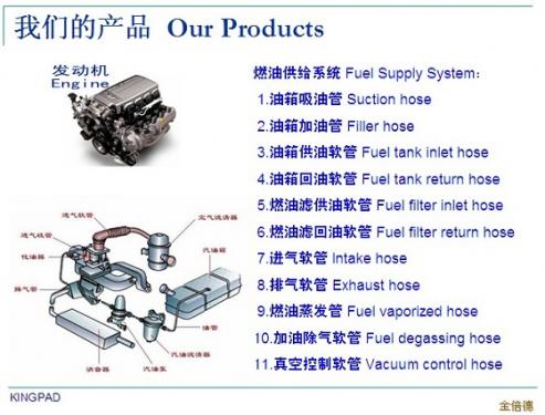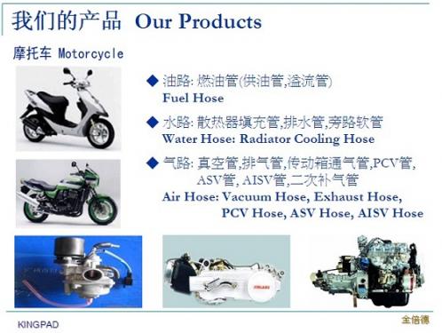 廈門金倍德橡塑科技有限公司是一家集研發、生産、模具設計和銷售各類橡膠(塑膠)制品的綜合性企業,專業生産 、加工、銷售精密橡膠(塑膠)制品: 各類機車燃油管、輸油管、回油管、CARB認證油管、EPA認證油管、電噴車專用油管(四重管)、摩托車二次補氣專用油管 (外紗 ACM管)、水管、尼龍管、矽膠管 、氣管、PU管 、PVC管、異型橡膠管、密封膠條等。産品主要應用於(yú)汽車、工程機械、摩托車、通用汽油機、發電機組、園林植保機械、水暖衛浴、醫療器材、電子電器、通迅設備(bèi)等行業。